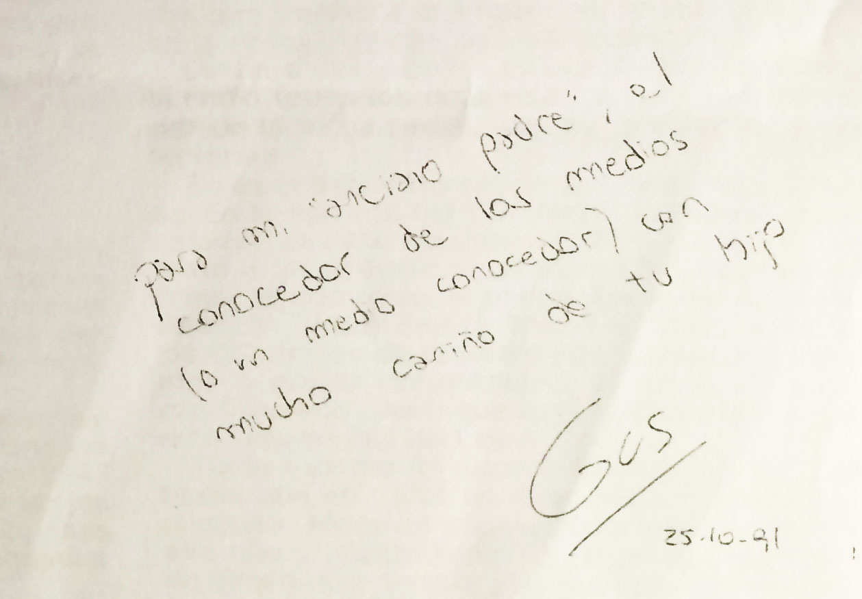 Hasta aquí la nota. Creo que en el trabajo me fue muy bien.Para cerrar les dejo la «dedicatoria» que le escribí en la nota que imprimí y le regalé a mi «anciano padre», como le decíamos cariñosamente a mi querido papá.